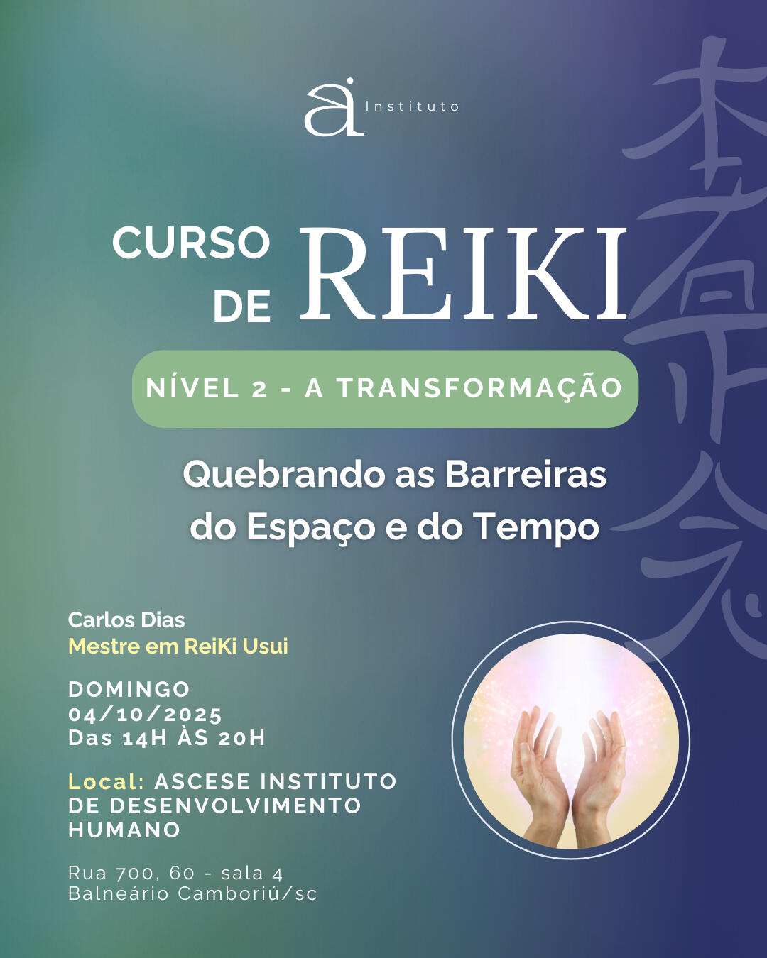 Sua jornada acontecerá no espaço Ascese Instituto de Desenvolvimento Humano, um ambiente tranquilo e acolhedor, projetado para facilitar sua conexão com a energia do Reiki. É o refúgio perfeito para a sua Transformação.